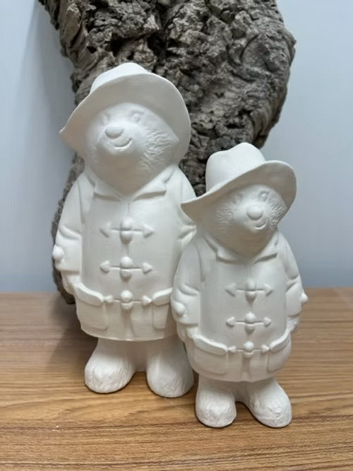 These adorable ceramic Paddington Bears are ready for an adventure — and it starts with your paintbrush! Whether you choose the big bear, the little bear, or both, you can bring them to life with your own colours, patterns, and personality.